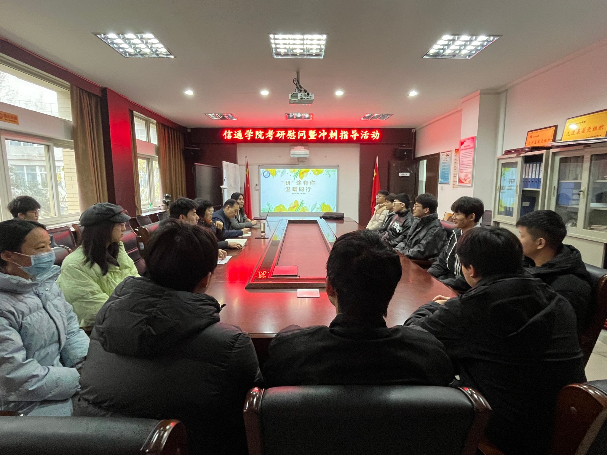在这考研最后的冲刺时分,学院通过举办慰问会考研慰问暨冲刺指导活动,用爱与关怀为他们筑起温暖后盾,愿大家都能胸有成竹赴考场,笔锋出鞘书华章,向着理想学府乘风破浪,梦想生辉。(通讯员 张欣雨 魏晓宇)