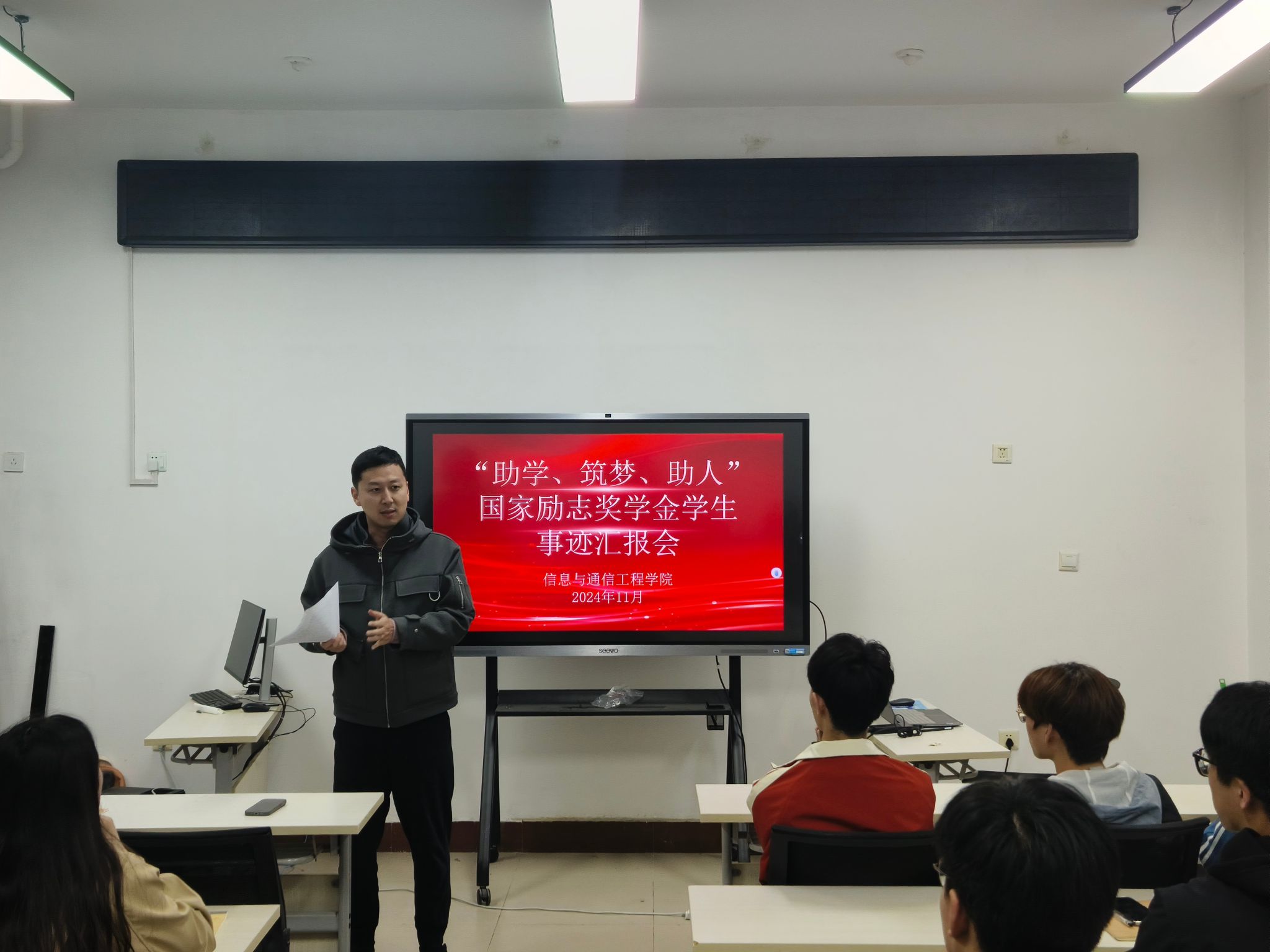 青春由磨砺而出彩,人生因奋斗而升华。为充分发挥国家励志奖学金获得者的示范引领作用,激励我院学生奋发有为,向先进人物学习,11月13日,伟德国际1949在10 号教学楼举办“助学、筑梦、助人”国家励志奖学金学生事迹汇报会,学工办辅导员、部分励志奖学金获得者和2024级学生代表参加本次活动。