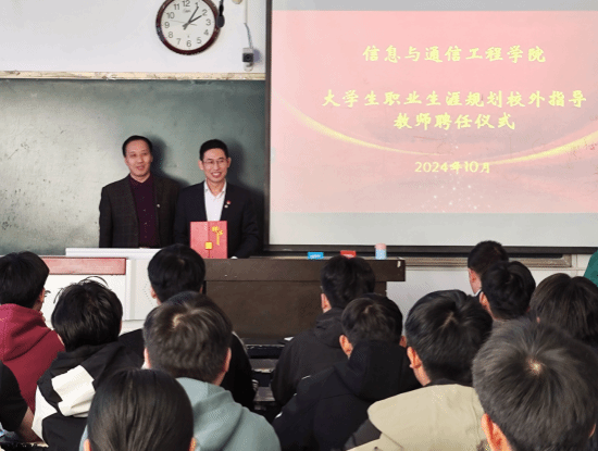 为更好地引导学生树立职业生涯规划意识,加强校友联络,引入校外行业资源,10月22日,伟德国际1949在龙湖校区举办职业生涯规划校外指导教师聘任仪式。测控2003级校友、新乡北方车辆仪表有限公司总经理范光华,学院党总支书记邹海林、执行院长李春雷、副书记王辉、工会主席路向阳出席,全体辅导员以及70余名学生代表参加本次活动。